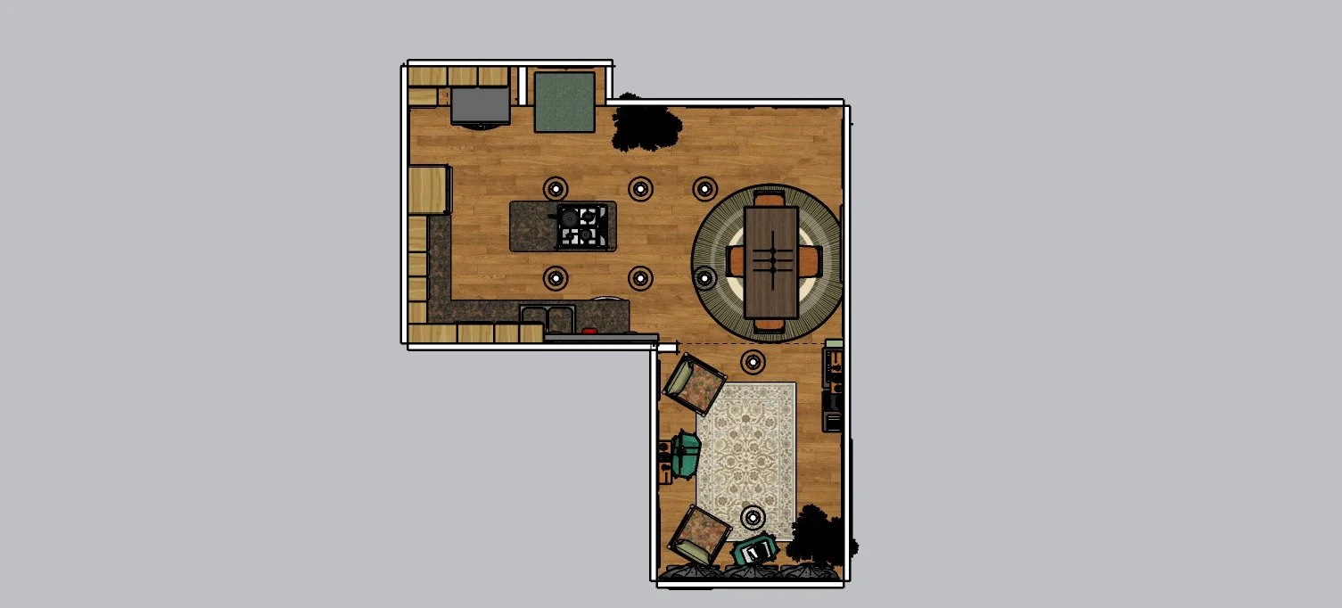 For the kitchen, we were told to build a set "on location". I used my own kitchen as a base for my design. I built this set is Sketch-up and introduced myself to V-ray to render the lighting.
